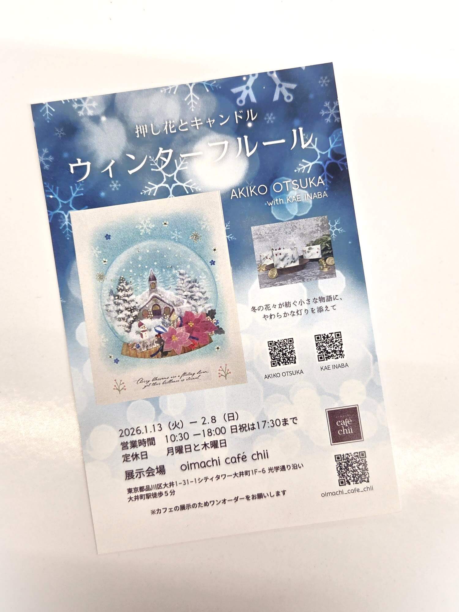 大井町駅から近い閑静な住宅地のカフェでミニ個展を開催します。押し花&キャンドル展示販売。